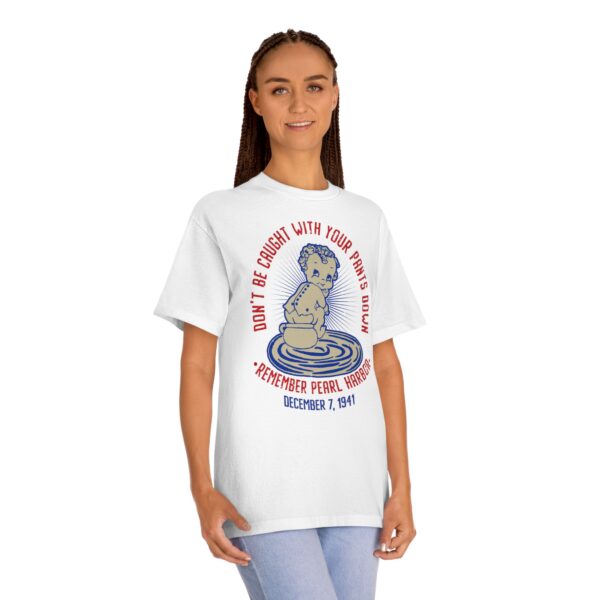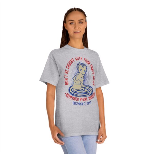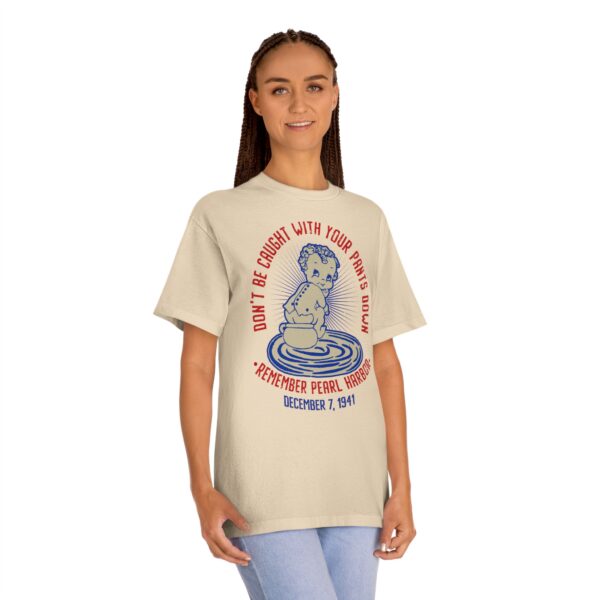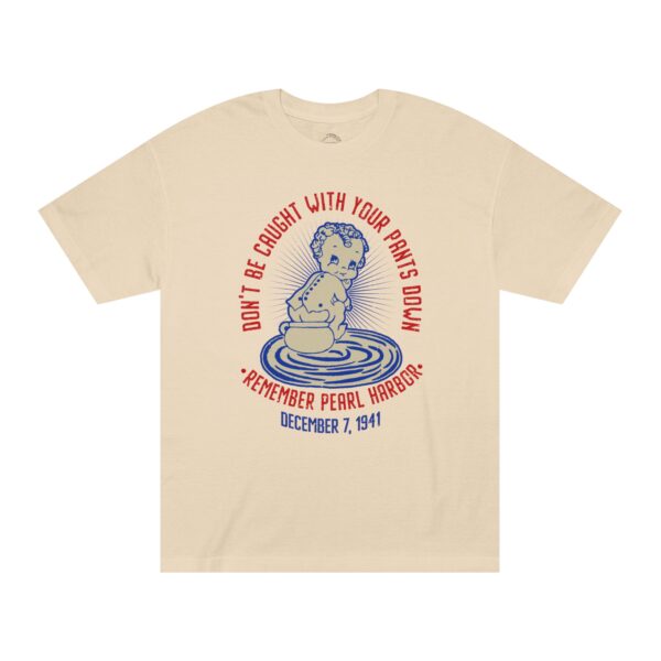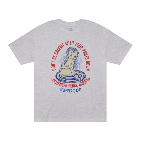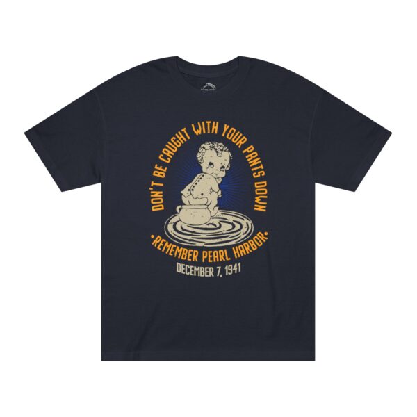 Featuring a retro cartoon-style design and the phrase that once rallied Americans during WWII, this tee is the perfect mix of vintage style and modern-day comfort. Whether you’re a military history buff, Navy veteran, or someone who loves standout apparel with purpose, this shirt makes a statement that sticks. Support “Operation 85” and the U.S.S. Arizona Project with this patriotic “Don’t Get Caught With Your Pants Down” Remember Pearl Harbor! unisex tee for every casual outing. A great item or gift for any Navy, WWII or Pearl Harbor history buff.