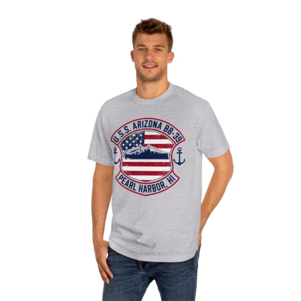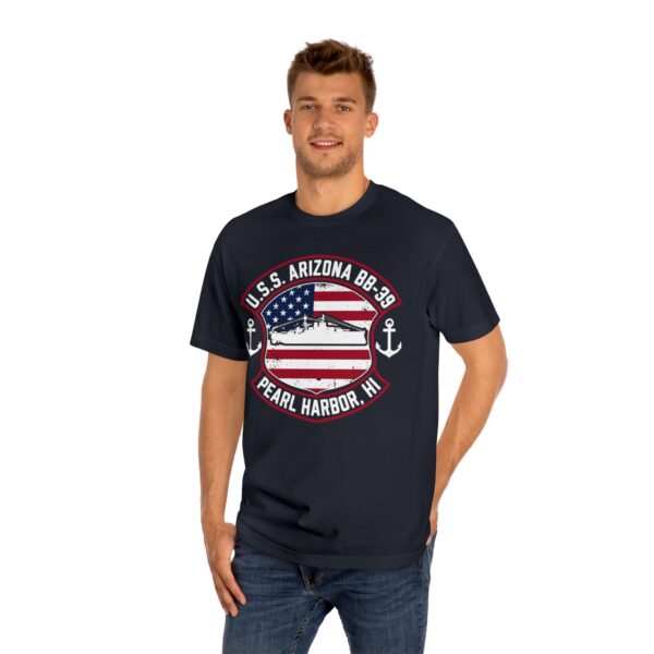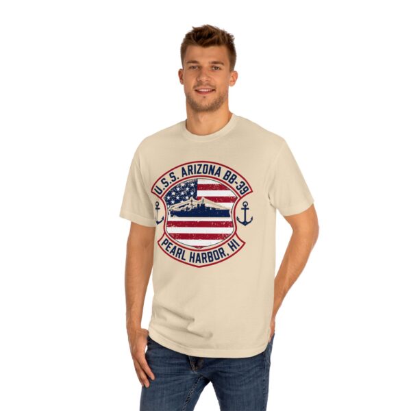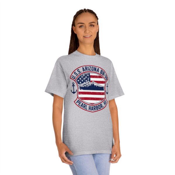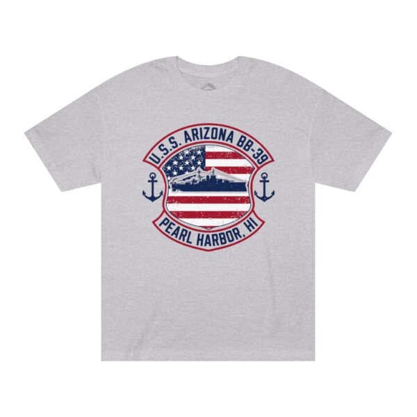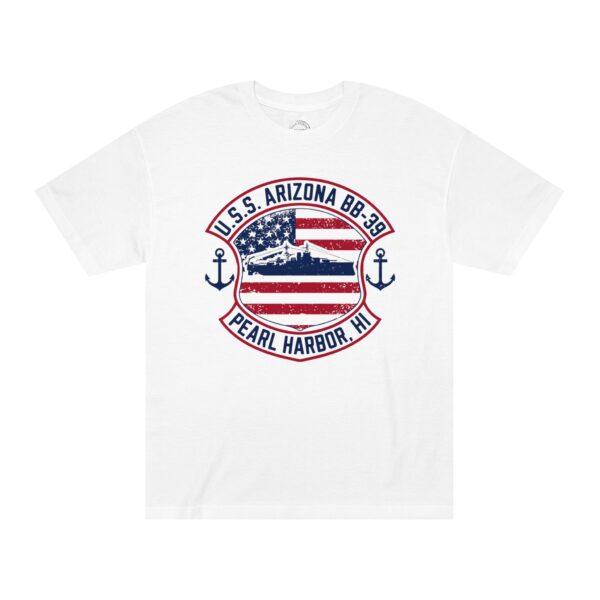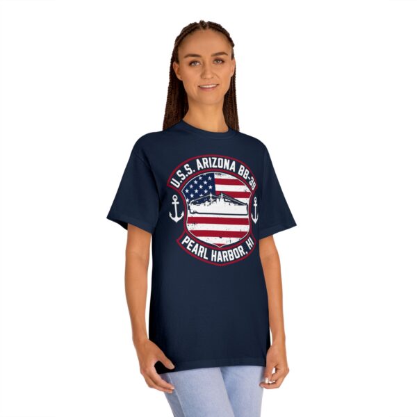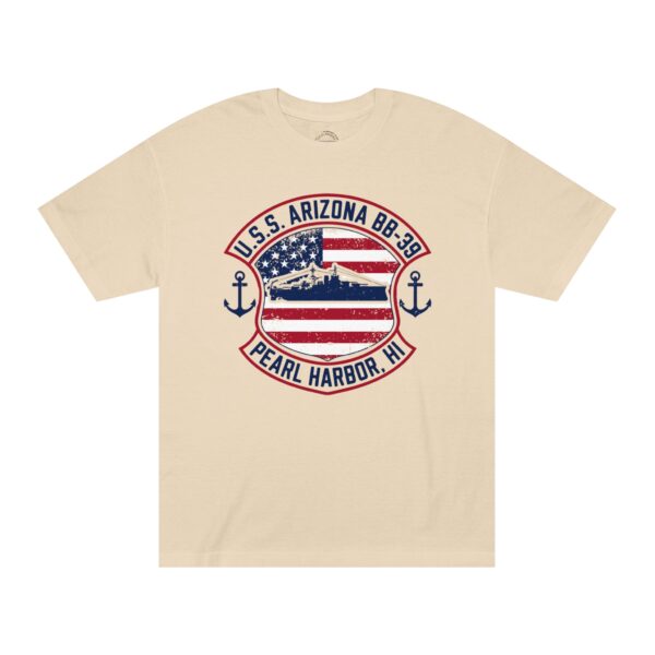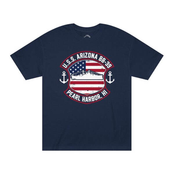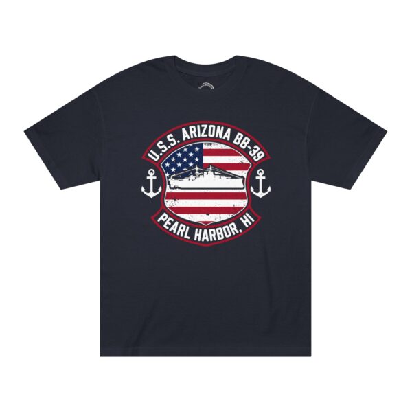 U.S.S. Arizona BB-39 American Shield w/Double Anchor Front Design unisex tee